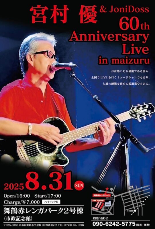 8/31の日曜日は、皆様楽しみにしておられると思います、宮村優&JoniDoss in 舞鶴ライブです〜!